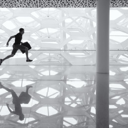 Un sistema tecnologico sviluppato ad hoc genera un’interazione tra corpo in movimento, suono e architettura, in un'opera immersiva e collettiva.